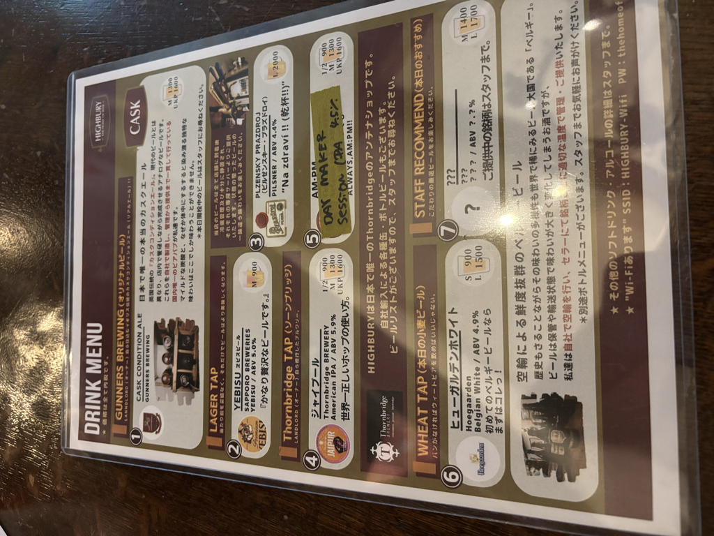 また、新宿御苑のハイバリーという激うまビアスタンドを教えてもらった。もう一軒行きたい気分だったのではしごすることにした。現場に行くとこういうふうに情報が繋がっていくのも面白い。