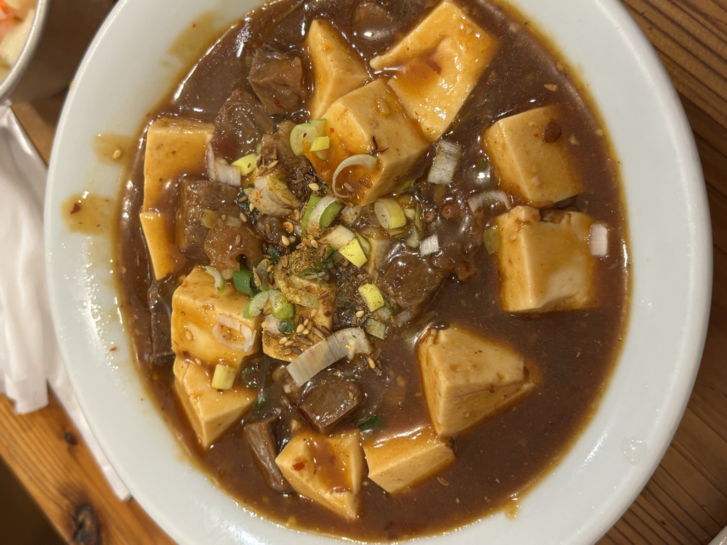 麻婆豆腐。ちょっと臭みがありおいしい。クサウマというジャンル。