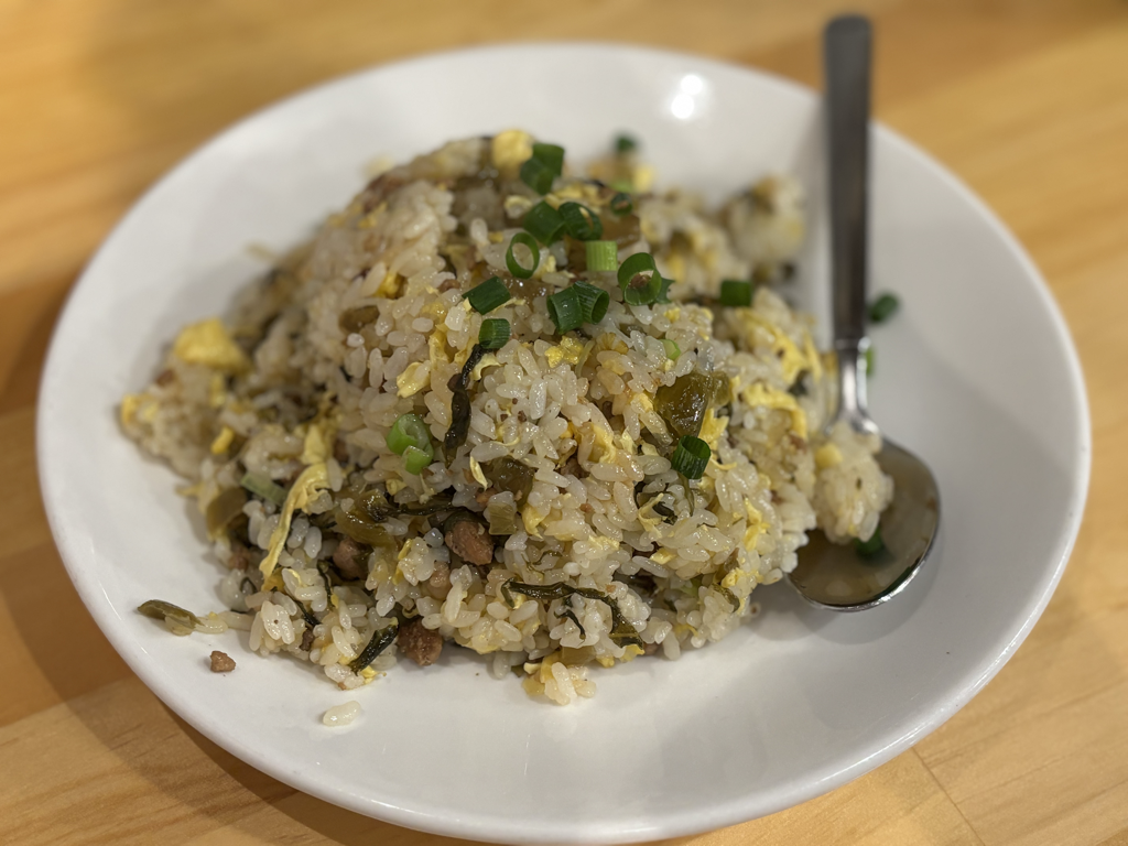唐辛子で舌がいってしまっていたので酸味をあまり感じなかったが、これまたうまい炒飯だった。パラパラではなく少し油がぺちゃっとなった焼き具合。高菜が油を吸い込むのでこの焼き加減がいいのだろう。
